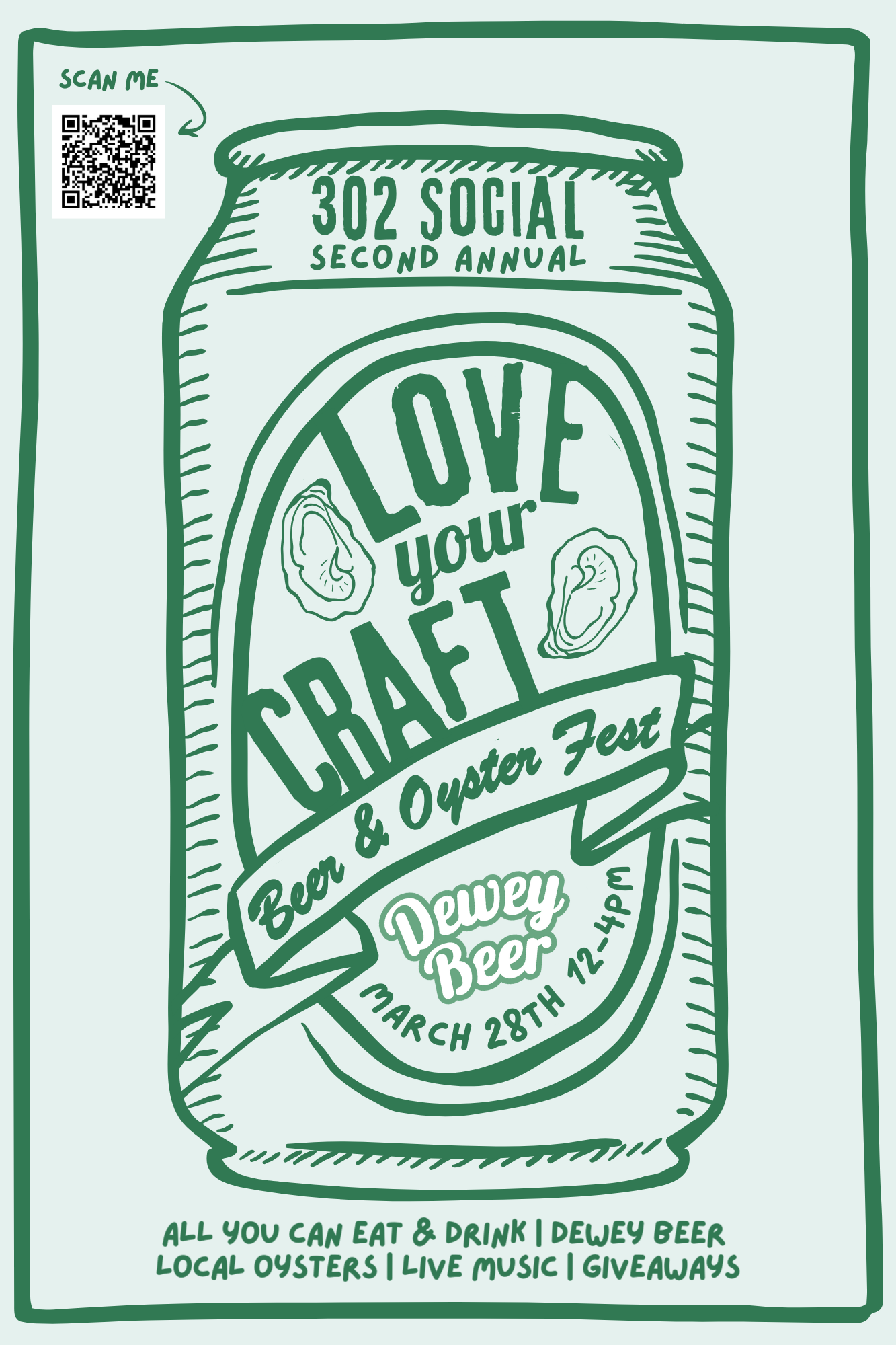 Celebrate the best of local craft beer and locally sourced oysters at the 2nd Annual Love Your Craft Beer & Oyster Fest, happening March 28th from 12–4pm at 302 Social Eatery and Barroom.